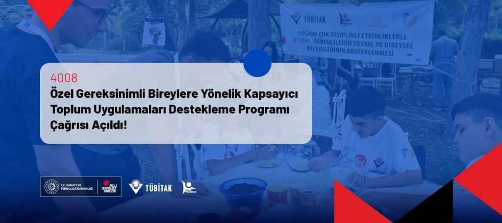 TÜBİTAK Bilim ve Toplum Başkanlığı tarafından yürütülen 4008 Özel Gereksinimli Bireylere Yönelik Kapsayıcı Toplum Uygulamaları Destekleme Programı başvuruları açılmıştır.